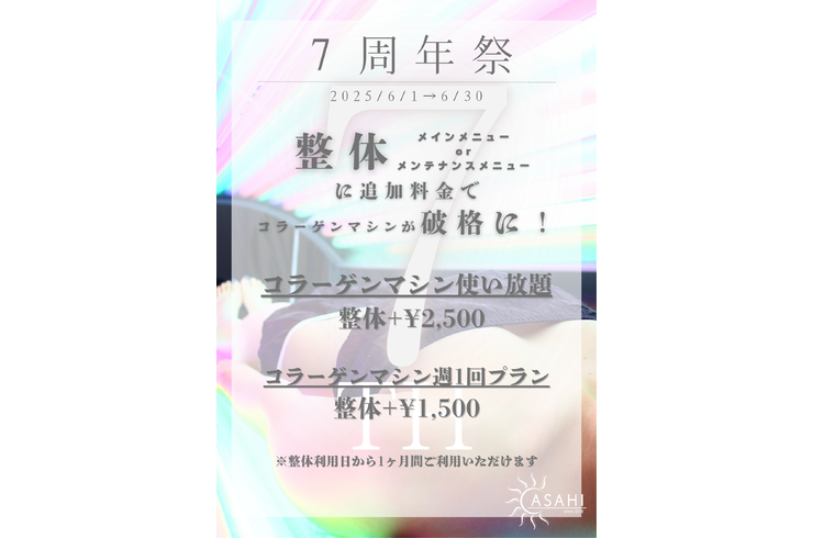 記念として、6月中に整体メニューご利用のお客様限定で